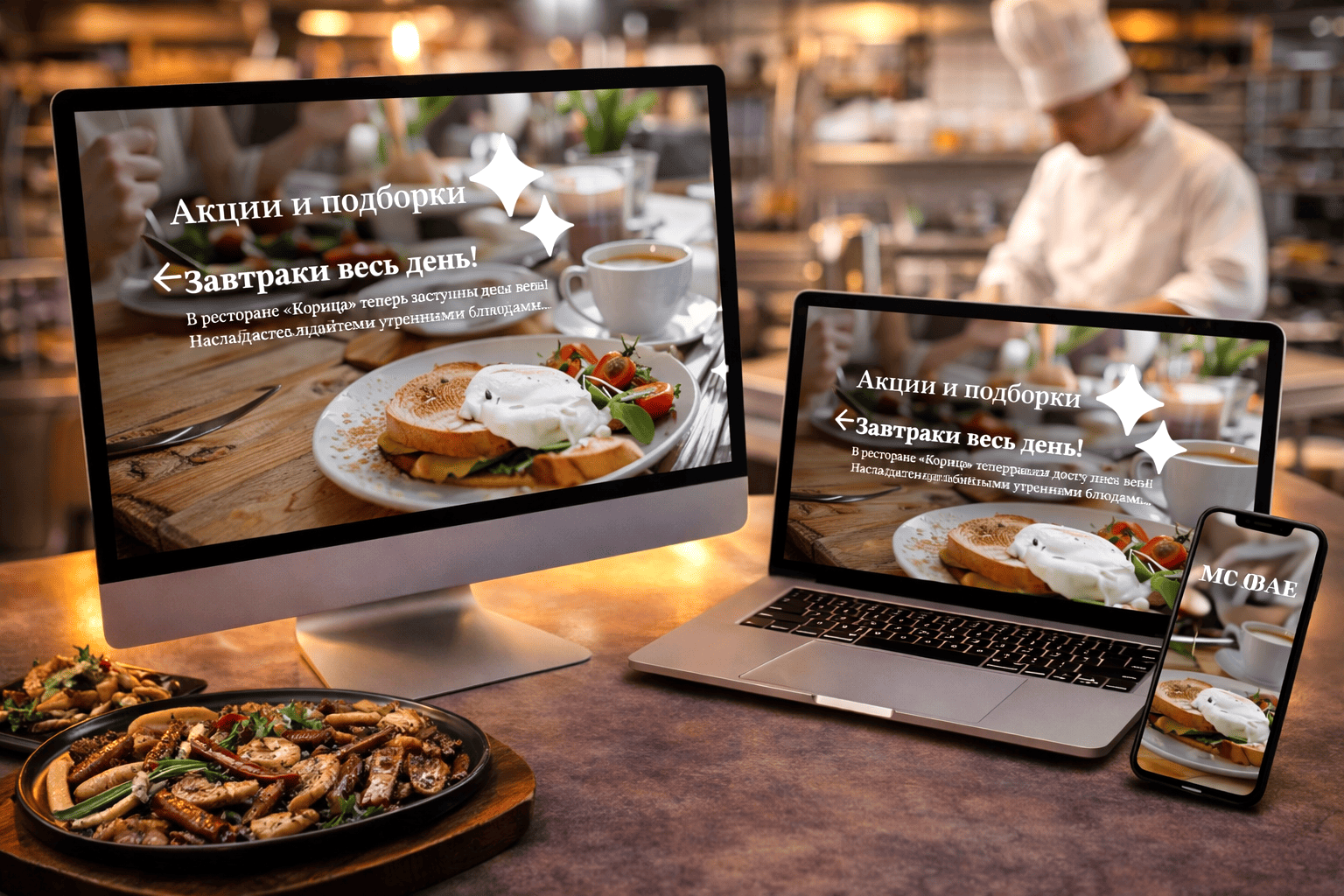 Веб-дизайн — это системная работа с восприятием, где структура и ритм изображений подчинены одной задаче — передать характер кухни и сервиса.