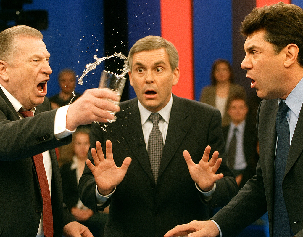 Студия ахнула. А Жириновский вскочил, взял второй стакан, крикнул: «А это за Ходорковского!» — и тоже швырнул в Немцова. Телеканалы по всему миру показывали этот эпизод, как политический маркетинг в России.